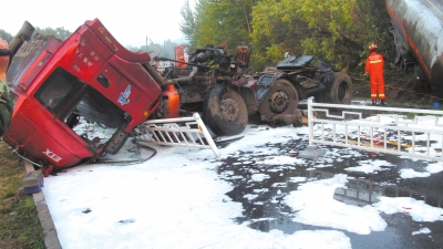 油罐車側(cè)翻 消防急救援