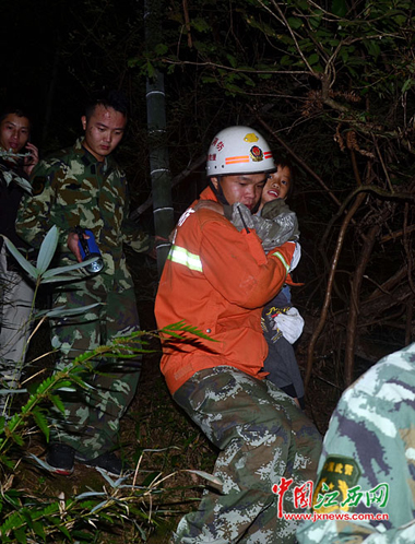 直到13日凌晨0時許,搜救人員在附近一高地隱約聽見小女孩的哭泣聲后,在銅線沖附近的山頂上發(fā)現(xiàn)了體力透支、正癱靠在樹上嗚咽的小女孩莊玉。官兵們輪流背著莊玉轉(zhuǎn)移下山。